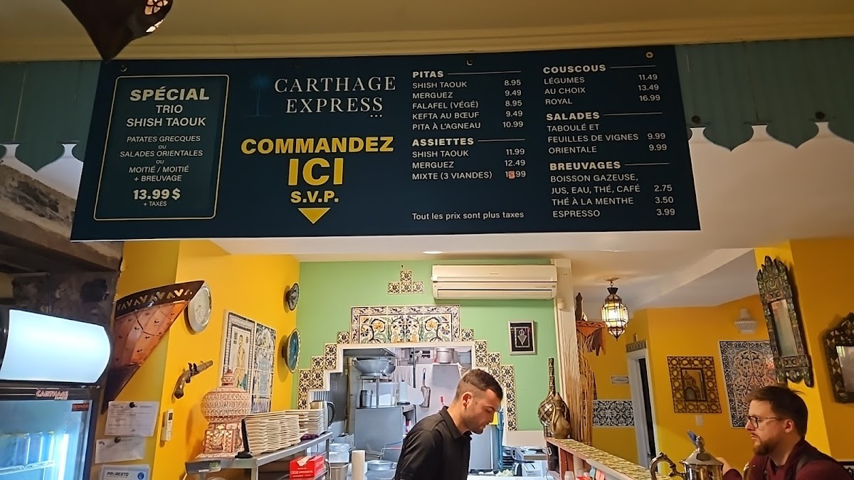 Welcome to Carthage Express, a hidden gem nestled in the heart of Quebec City at 20 Côte du Palais. This family-owned Tunisian restaurant invites diners to explore the vibrant and rich flavors of Tunisia through its authentic menu.